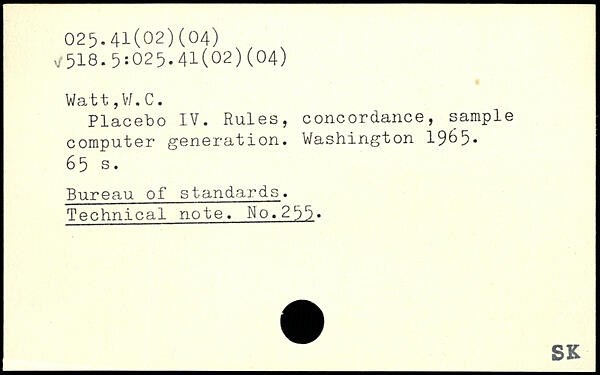 Placebo IV. Rules, concordance, sample computer generation. Washington 19^5-