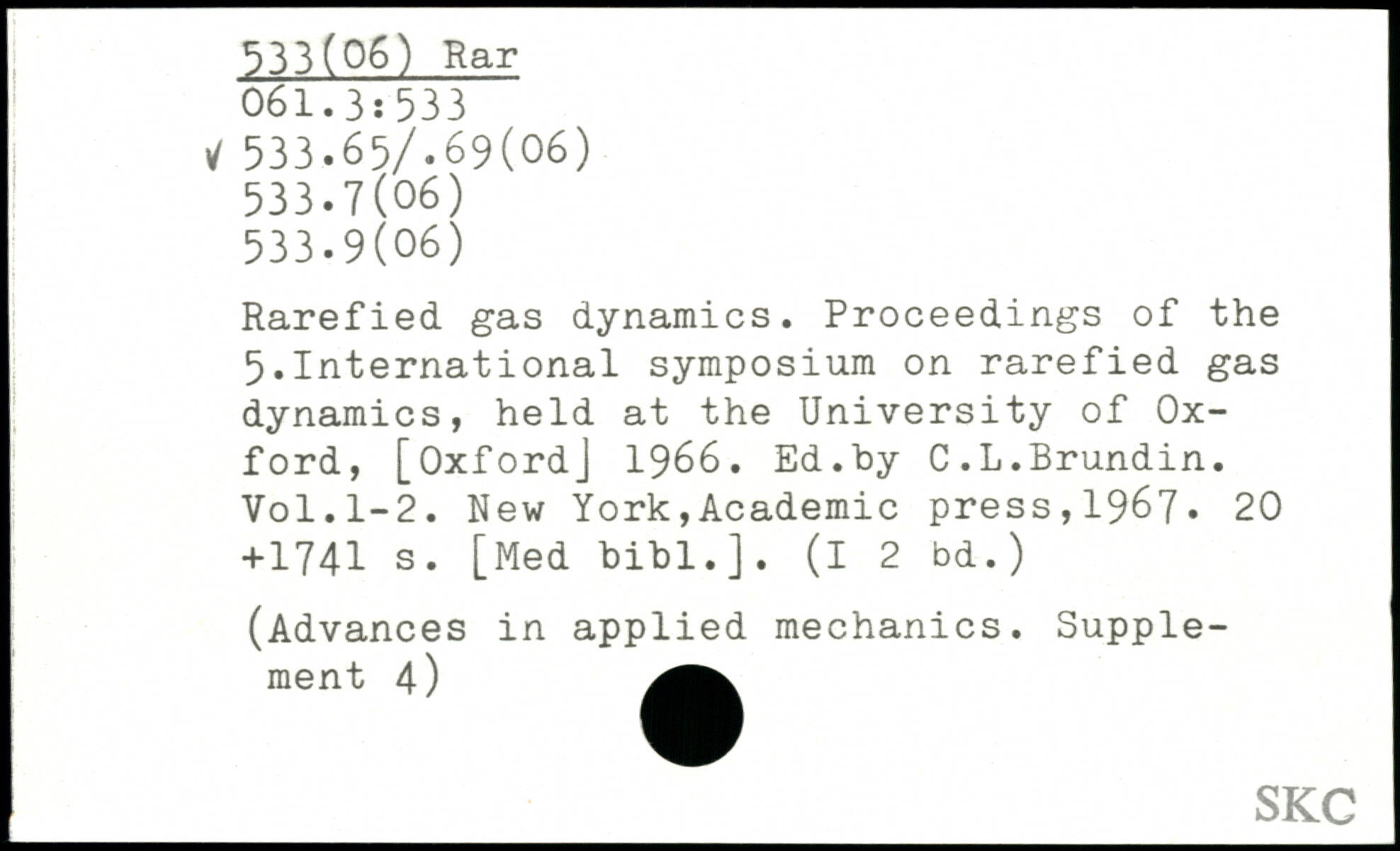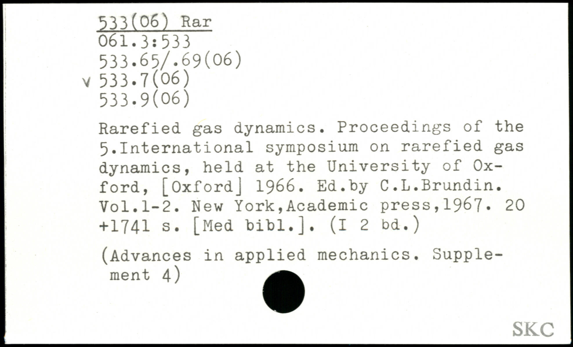 Rarefied gas dynamics. Proceedings of the 5.International symposium on rarefied gas dynamics, held at the University of Oxford