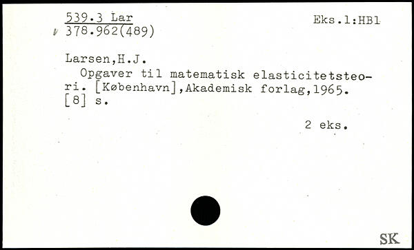 Opgaver til matematisk elasticitetsteori. [København],Akademisk forlag,1965.