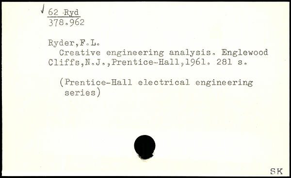 Creative engineering analysis, Englewood Cliffs,No Jo ,Prentice-Hall,1961, 281 s>