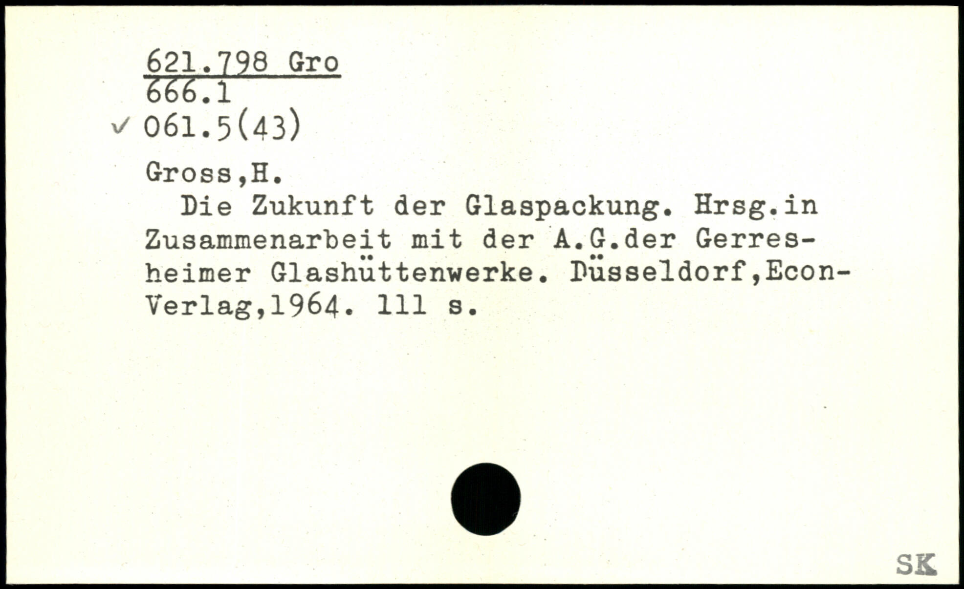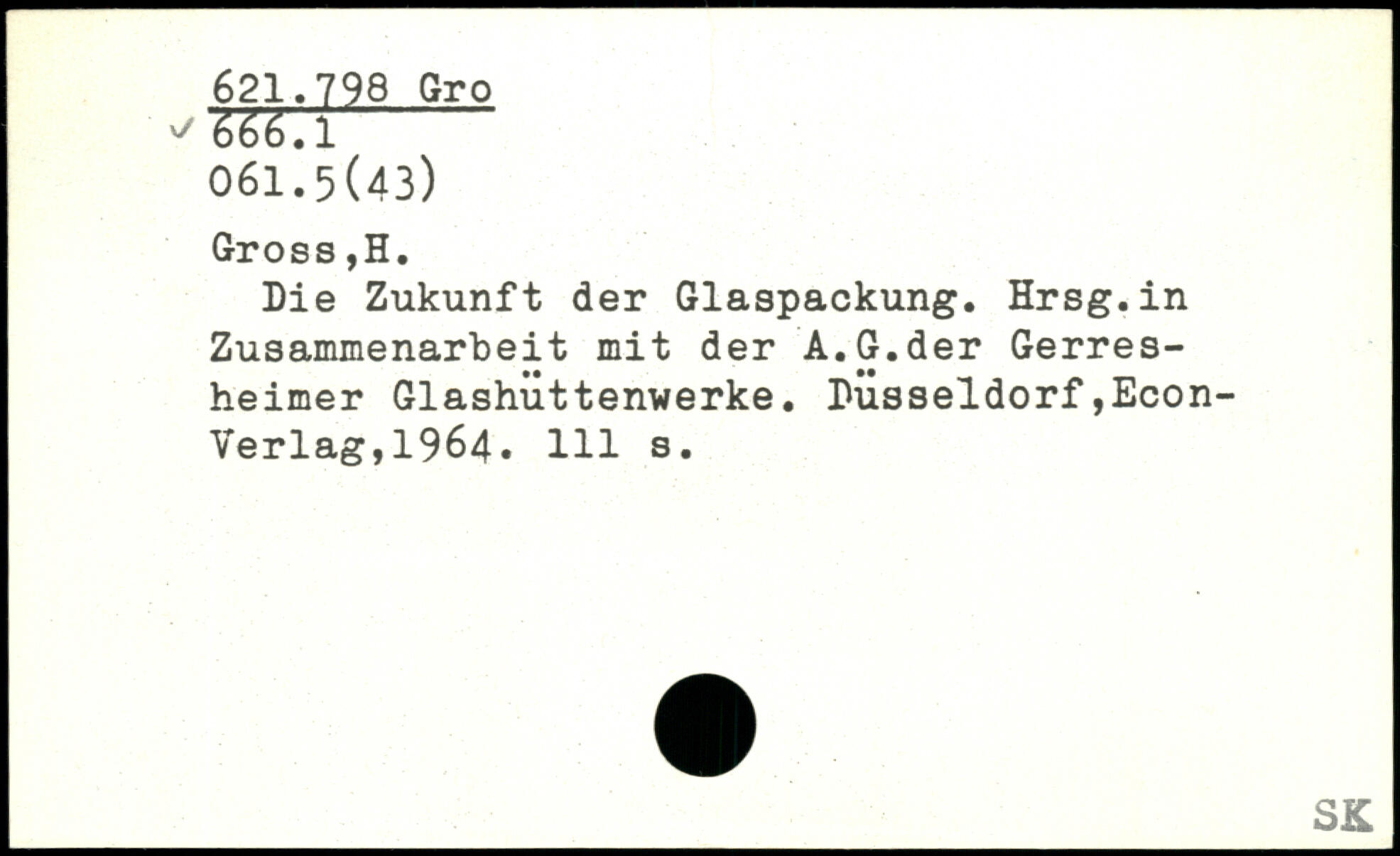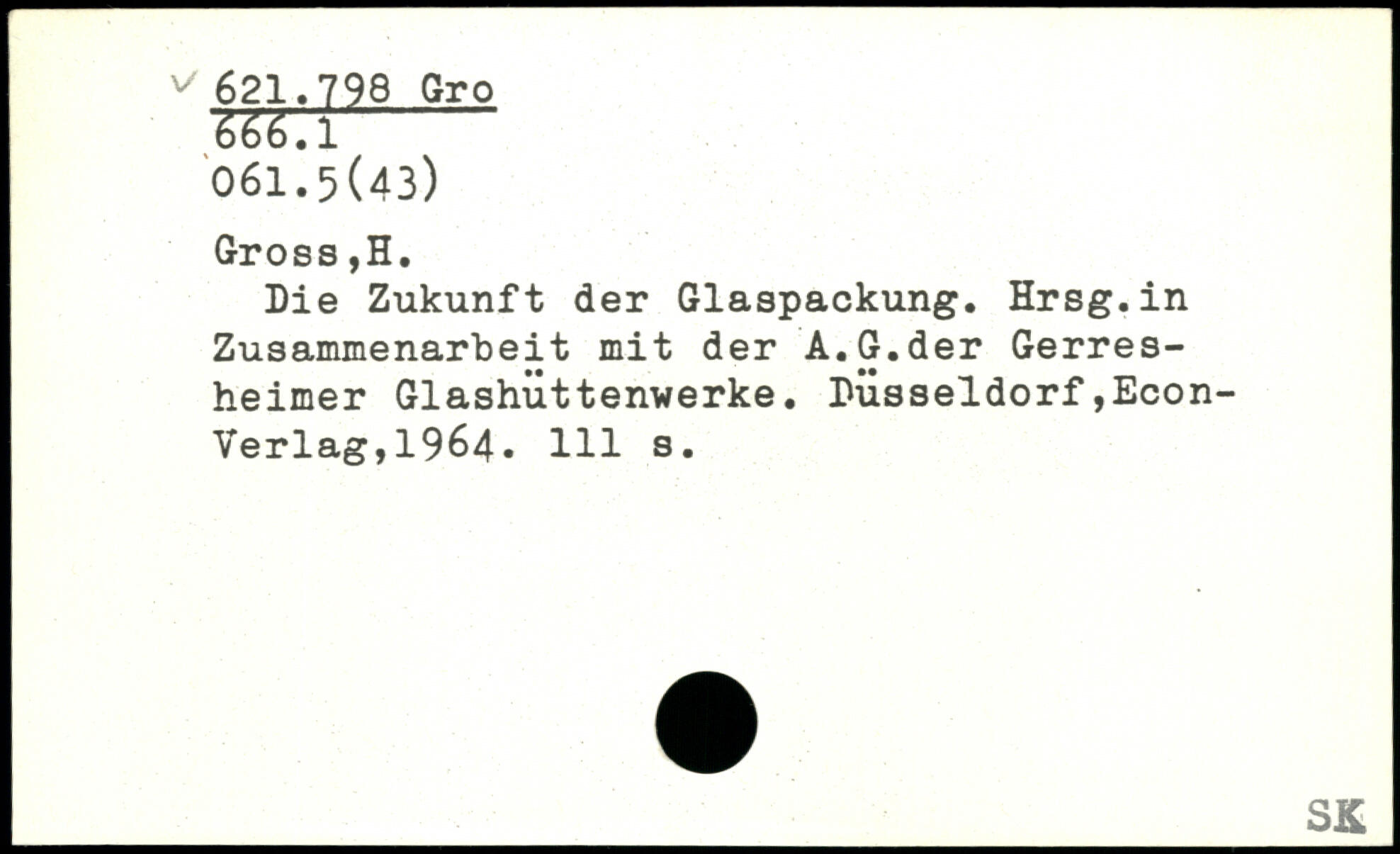 Die Zukunft der Glaspackung. Hrsg.in Zusammenarbeit mit der A.G.der Gerres-heimer Glashüttenwerke.