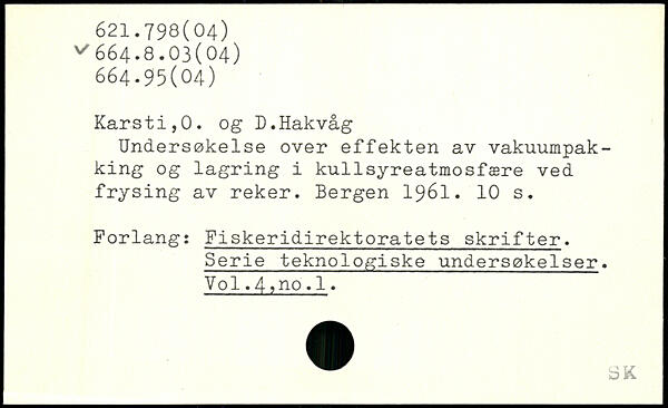 Undersøkelse over effekten av vakuumpak-king og lagring i kullsyreatmosfære ved frysing av reker.