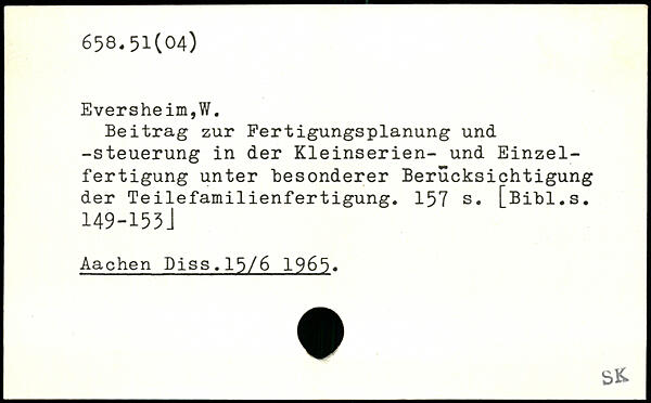 Beitrag zur Fertigungsplanung und -Steuerung in der Kleinserien- und Einzelfertigung unter Besonderer Berücksichtigung der Teilefamilienfertigung.