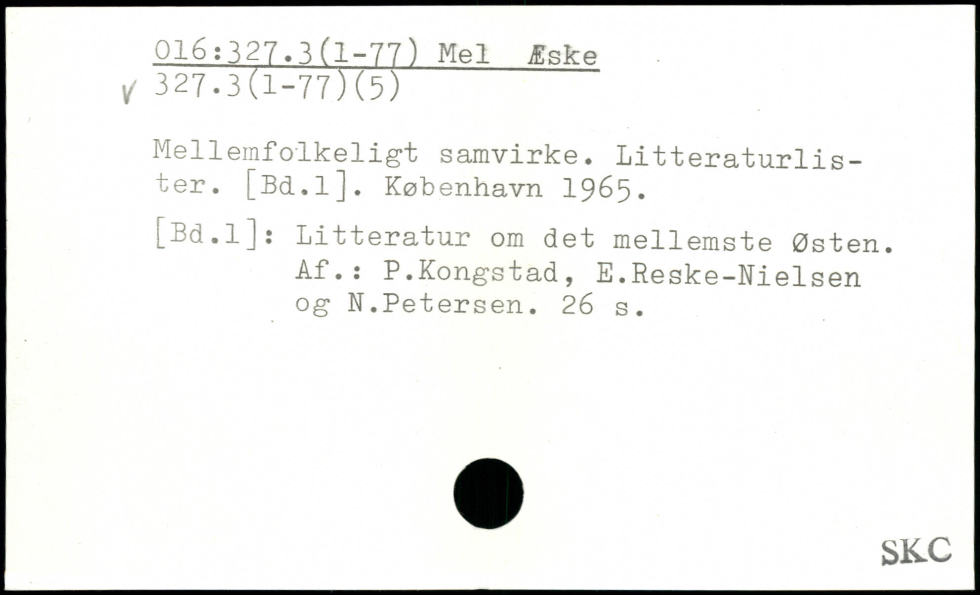 Mellemfolkeligt samvirke. Litteraturlister. [Bd.l].