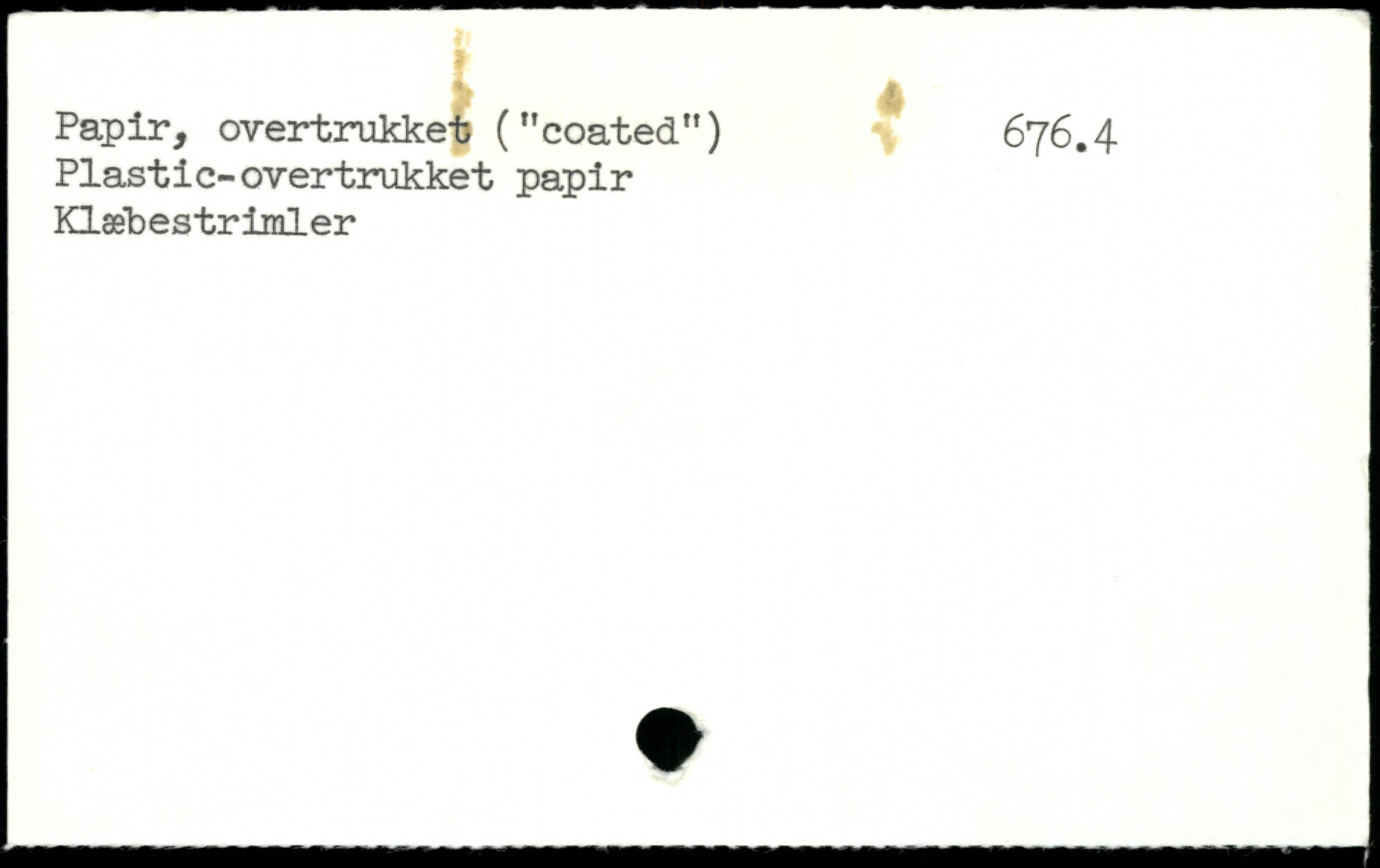 Papir, overtrukket ("coated") % 676.4 Plastic-overtrukket papir Klæbestrimler