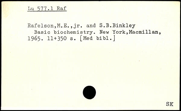 Rafelson,M.E.,jr. and S.B.Binkley Basic biochemistry.