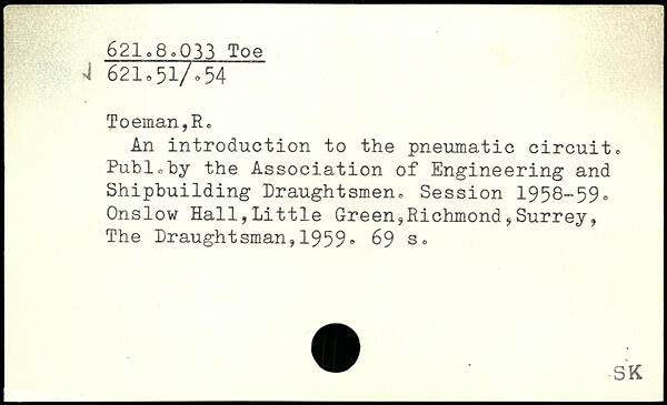 An introduction to the pneumatic circuit. Pubic by the Association of Engineering and Shipbuilding Draughtsmen. Session 1958~59