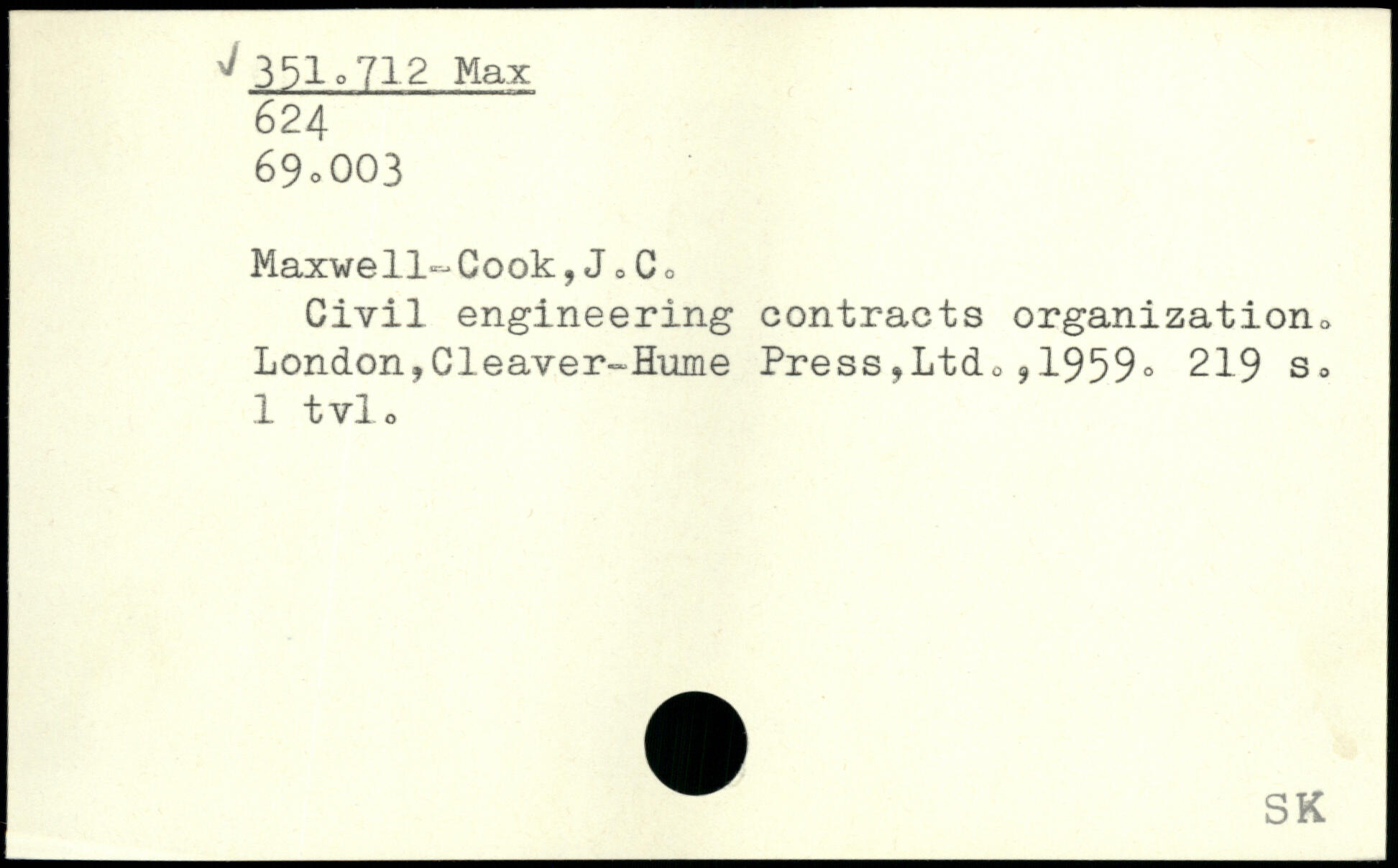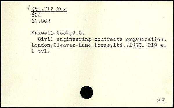 Maxwell-Cook,J 0C, Civil engineering contracts organization, London,Cleaver-Hume Press,Ltd,,1959.