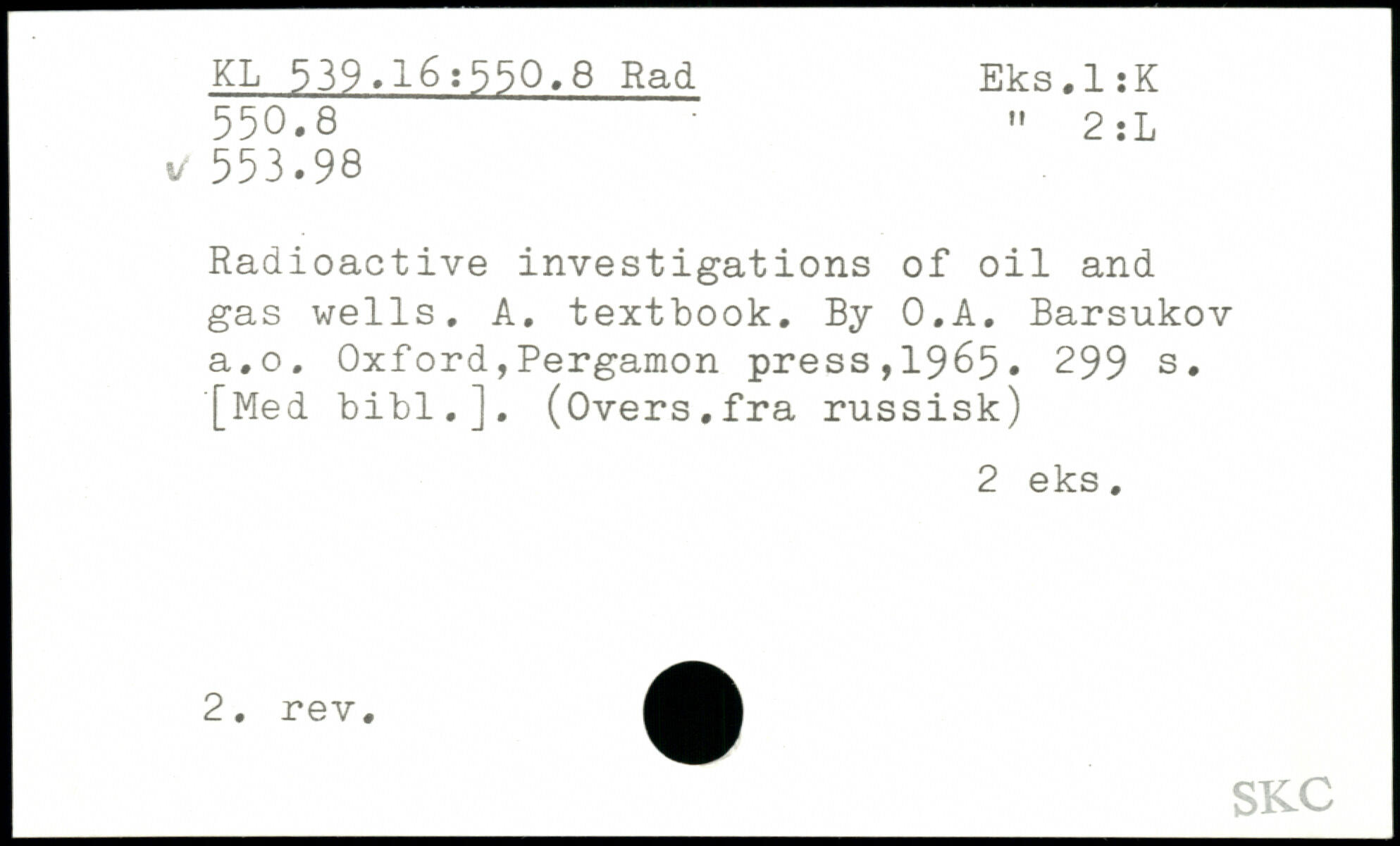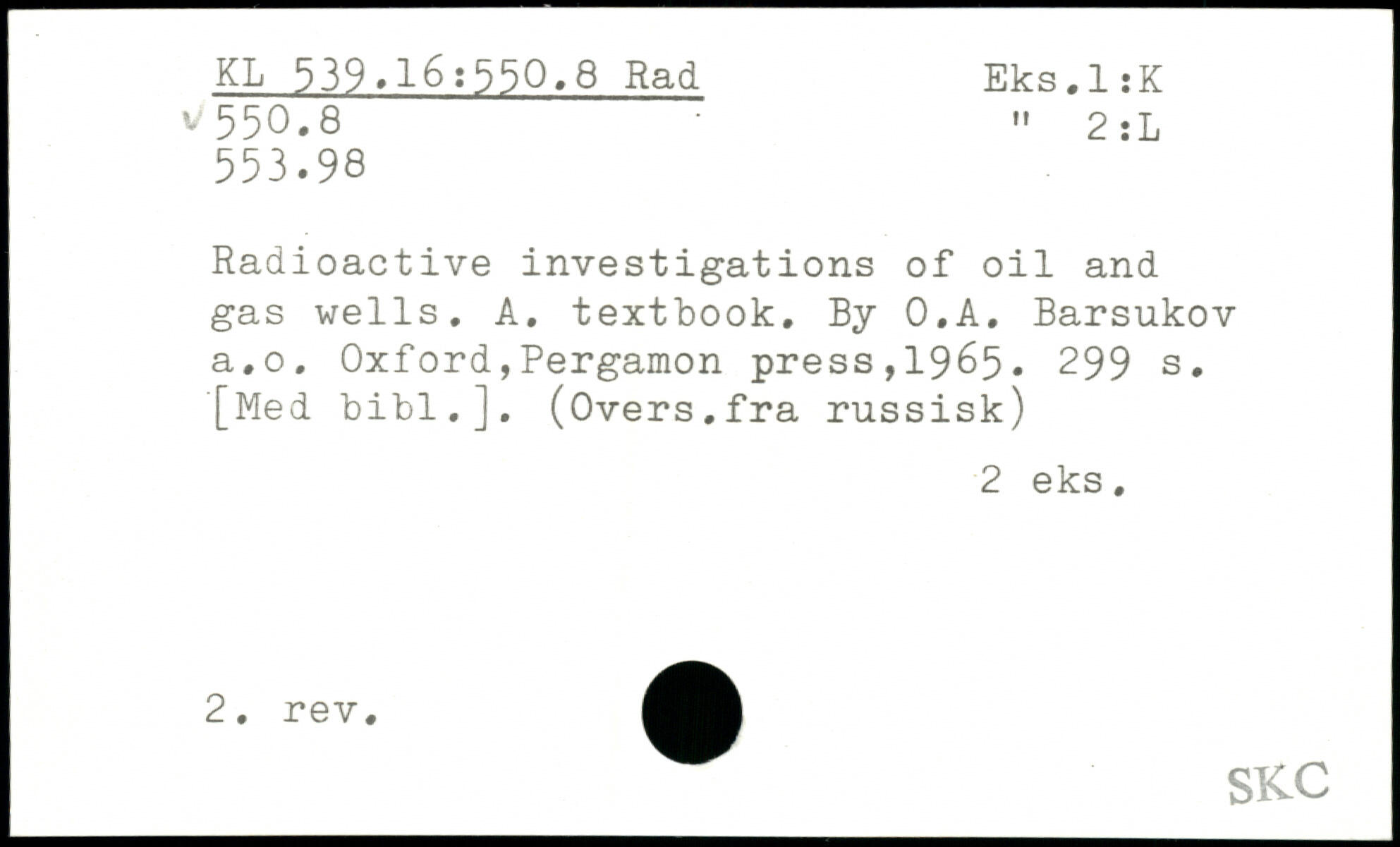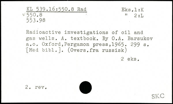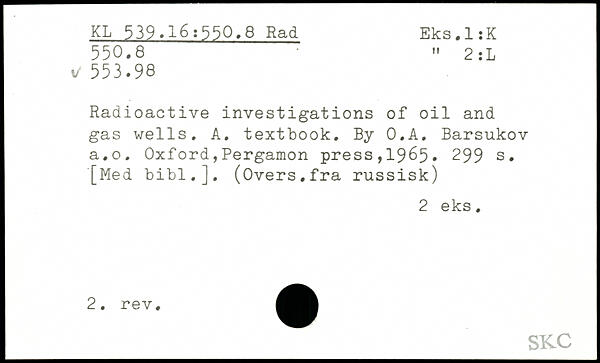 Radioactive investigations of oil and gas wells. A. textbook. By O.A. Barsukov a.o.