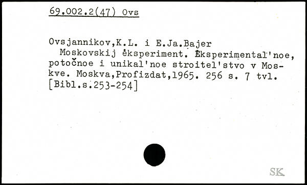 Ovsjannikov,K.L. i E.Ja.Bajer Moskovskij eksperiment. Eksperimental'1 noe, potocnoe i unikal’noe stroitel1stvo v Mos-kve.