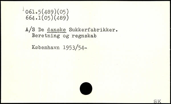 A/s De danske Sukkerfabrikker. Beretning og regnskab