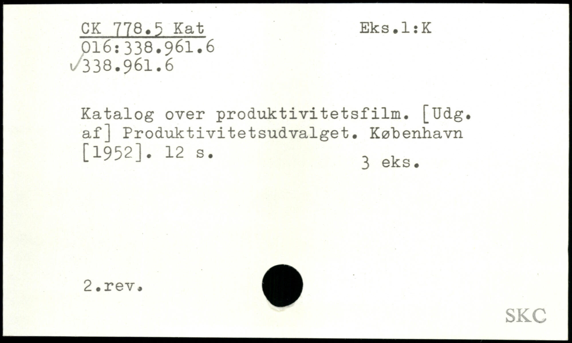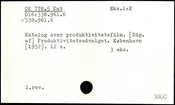 Katalog over produktivitetsfilm. [Udg. af] Produktivitetsudvalget. København [3-952].