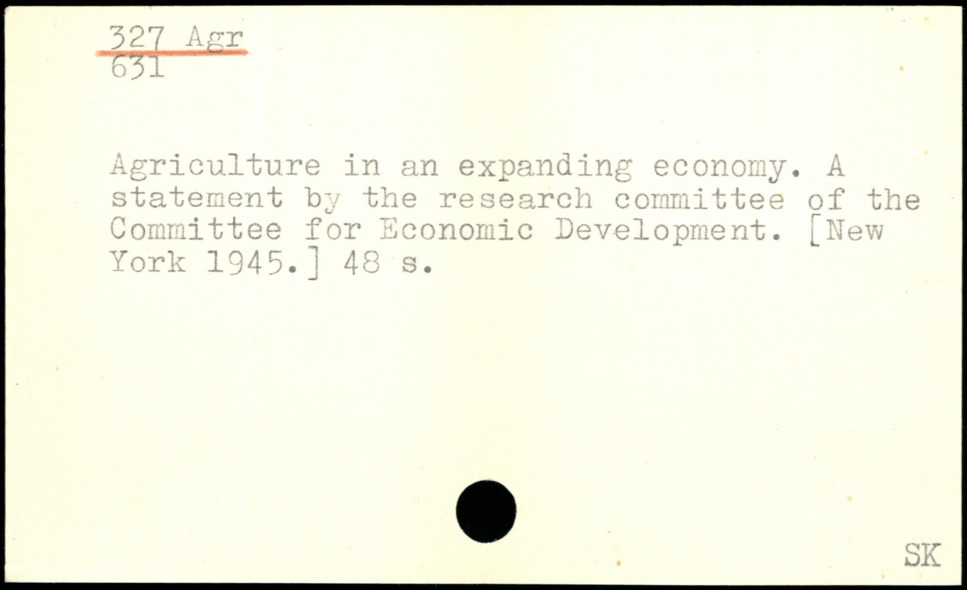 m. Agriculture in an expanding economy. A statement by the research committee of the Committee for Economic Development.