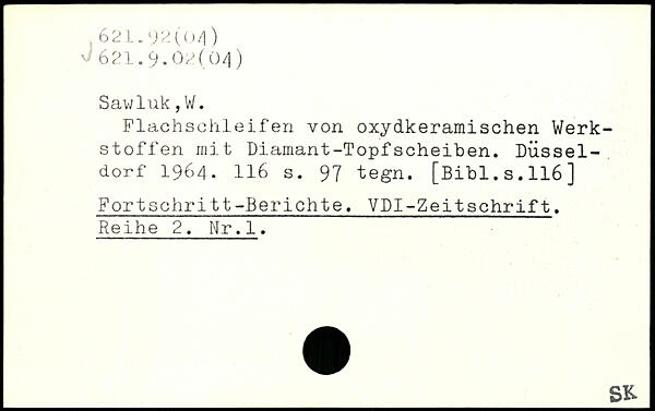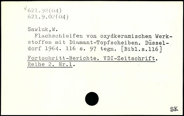 Flachschleifen von oxydkeramischen Werkstoffen mit Diamant-Topfscheiben. Düsseldorf 1964.