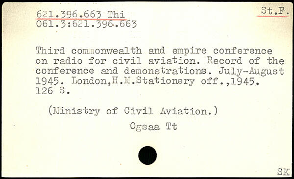 Third commonwealth and empire conference on radio for civil aviation. Record of the conference and demonstrations. July-August 1945. London,H.M.Stationery off.,1945.