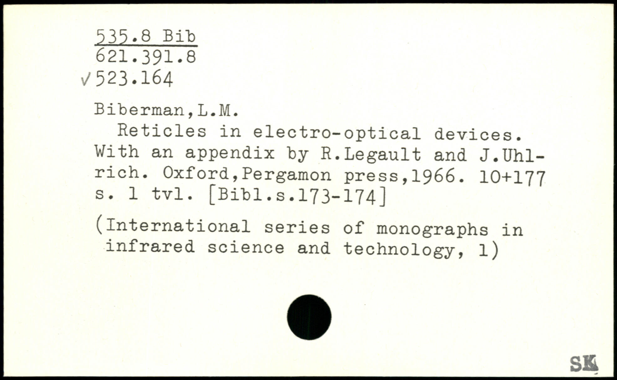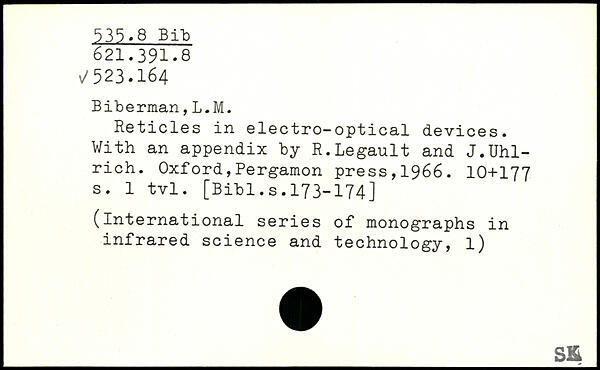 Reticles in electro-optical devices. With an appendix by R.Legault and J.Uhl-rich.