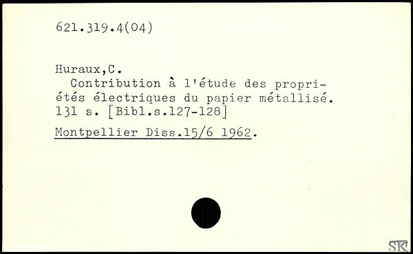 Contribution à l'étude des propriétés électriques du papier métallisé.