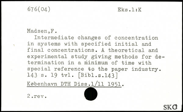 Intermediate changes of concentration , in systems with specified initial and final concentrations. A theoretical and experimental study giving methods for determination in a minimum of time with special reference to the paper industry.
