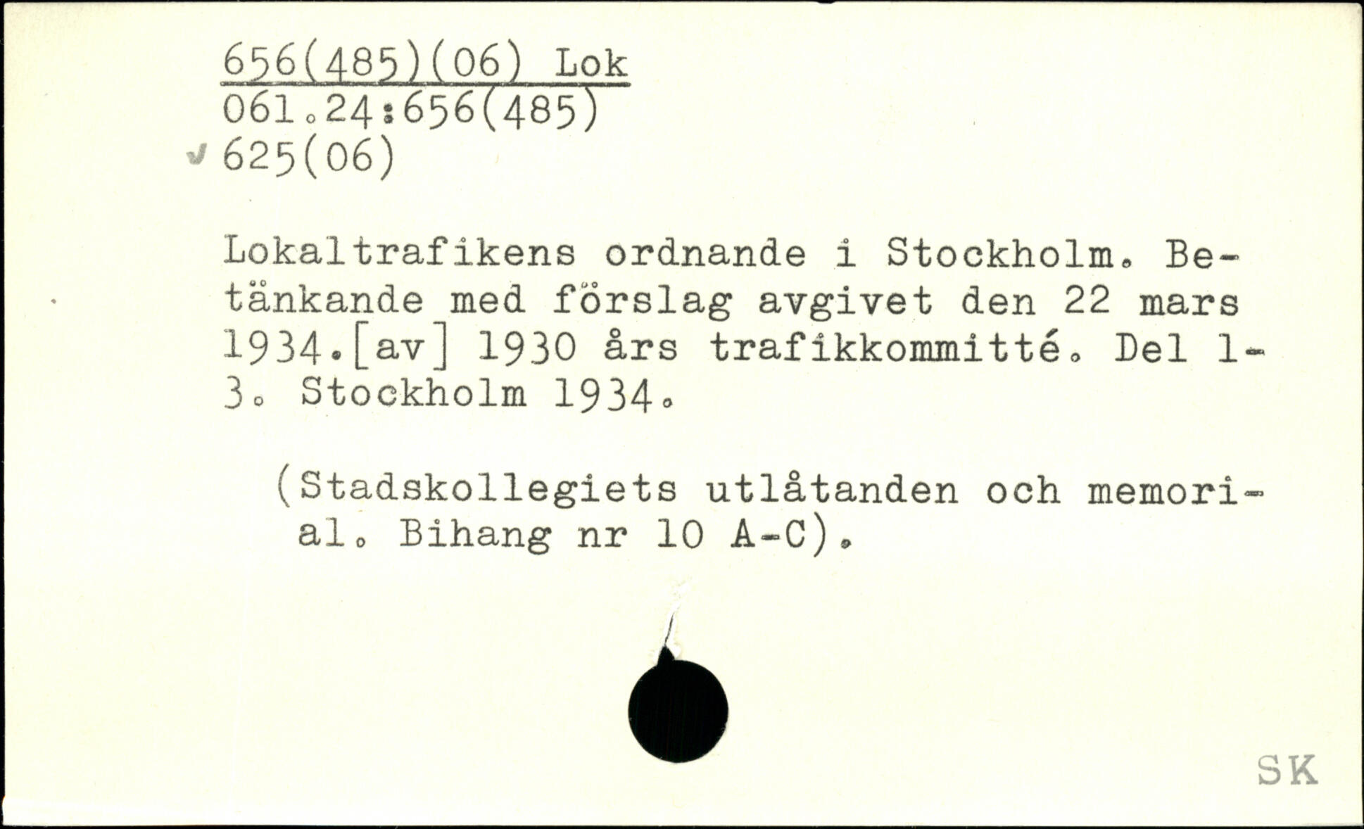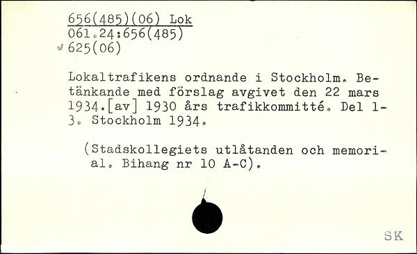 Lokaltrafikens ordnande i Stockholm, Betänkande med förslag avgivet den 22 mars 1934,[av] 1930 års trafikkommitté, Del 1-3o
