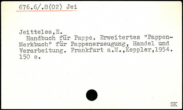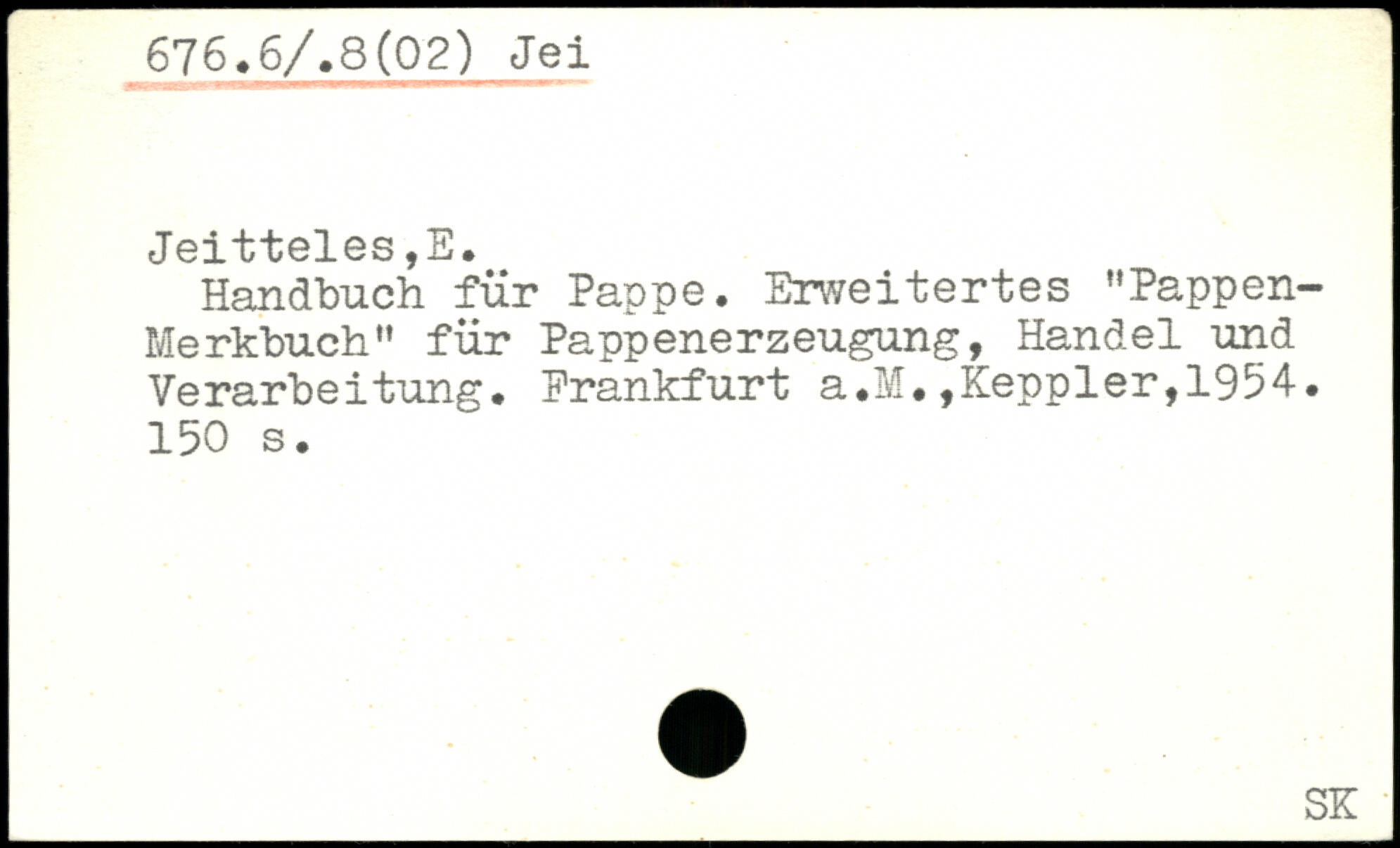 Handbuch für Pappe. Erweitertes "Pappen-Merkbuch" für Pappenerzeugung, Handel und Verarbeitung. Frankfurt a.