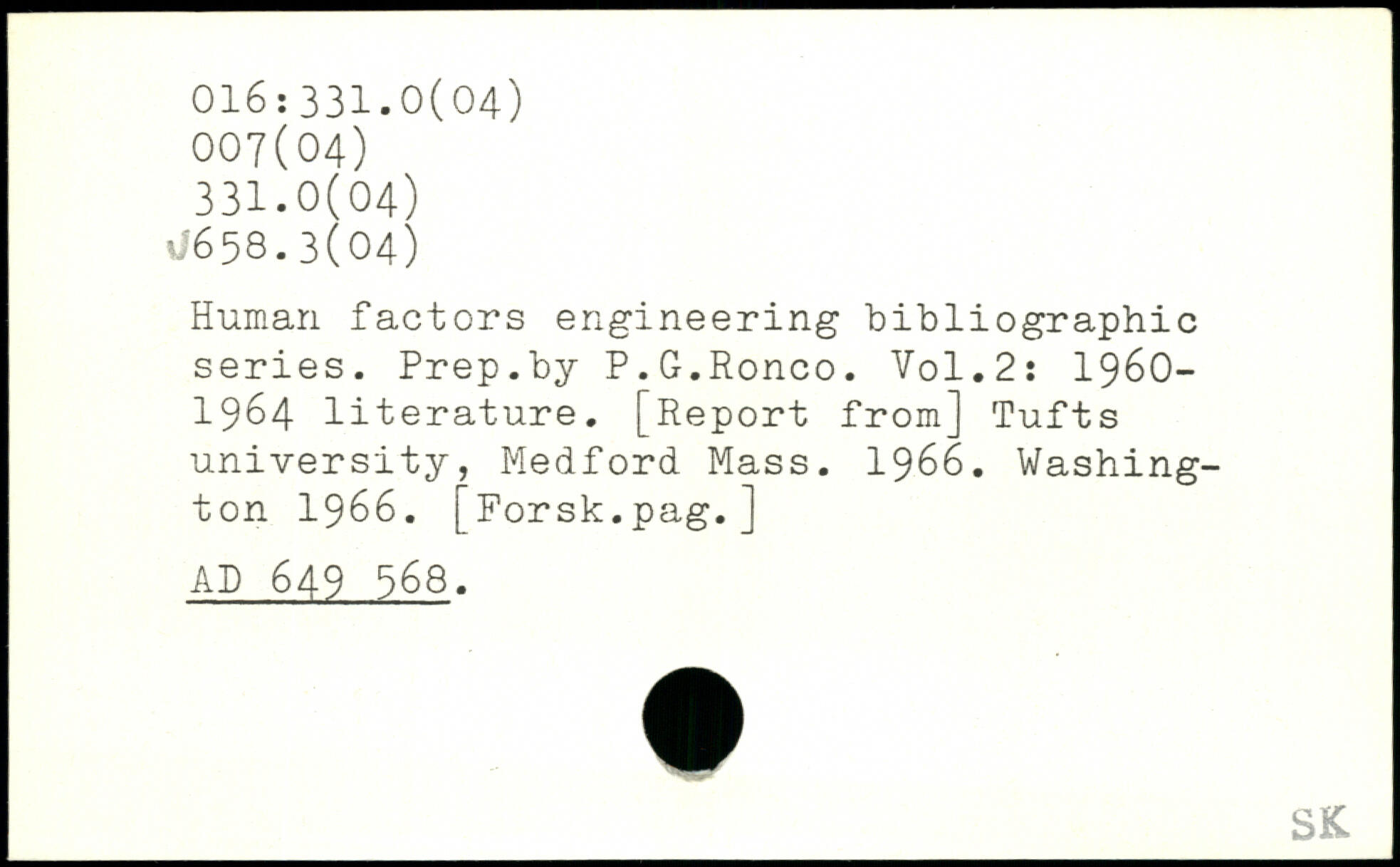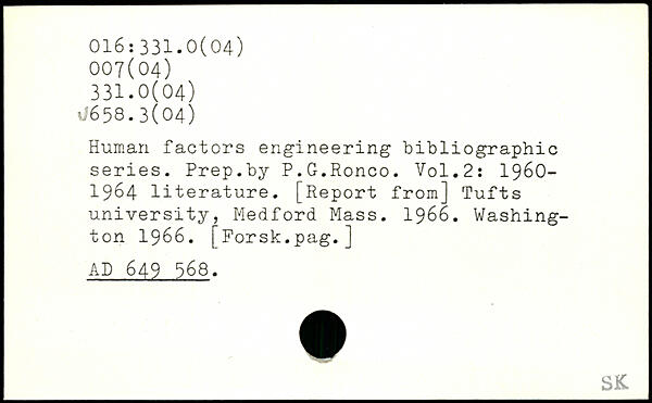 Human factors engineering bibliographic series. Prep.by P.G.Ronco.