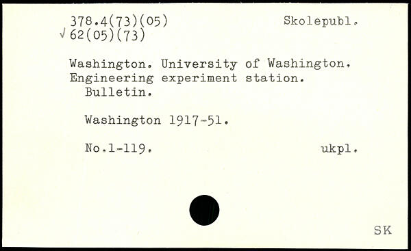 Washington. University of Washington, Engineering experiment station. Bulletin.
