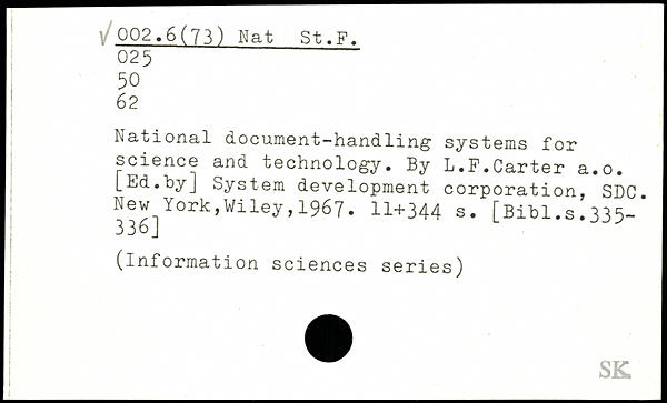 National document-handling systems for science and technology. By L.F.Carter a.o. |_Ed.byJ System development corporation, SDC 336]