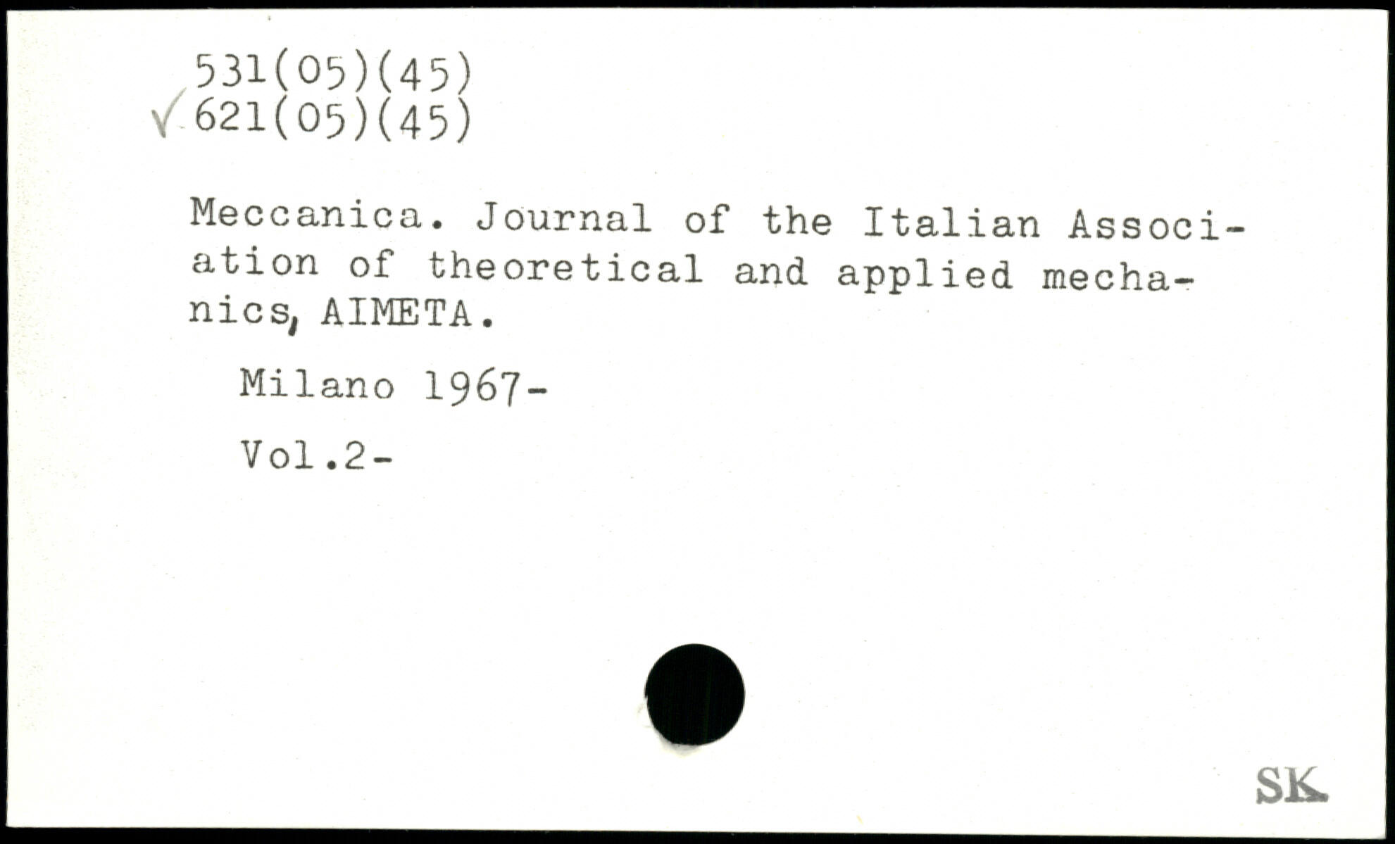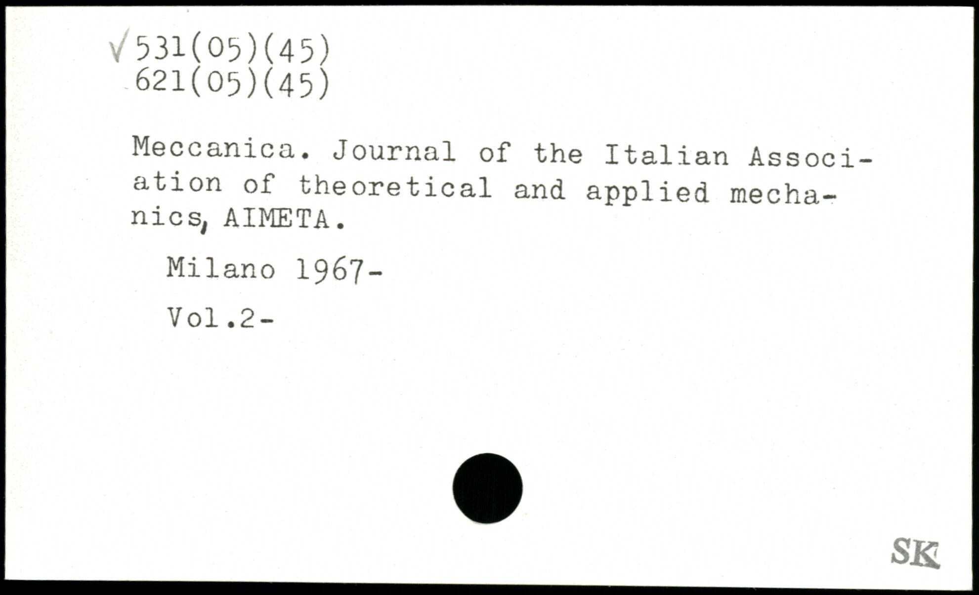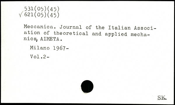 Meccanica. Journal of the Italian Association of theoretical and applied mechanics, AIMETA. Milano 1967-