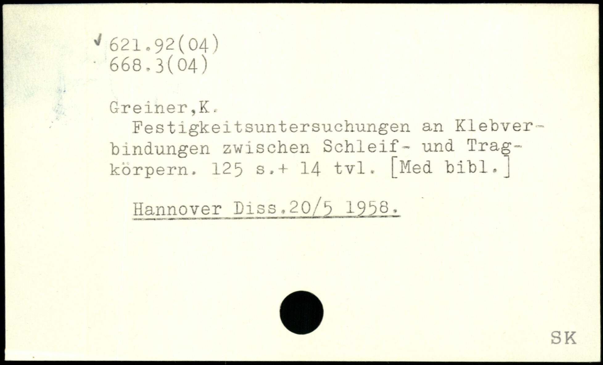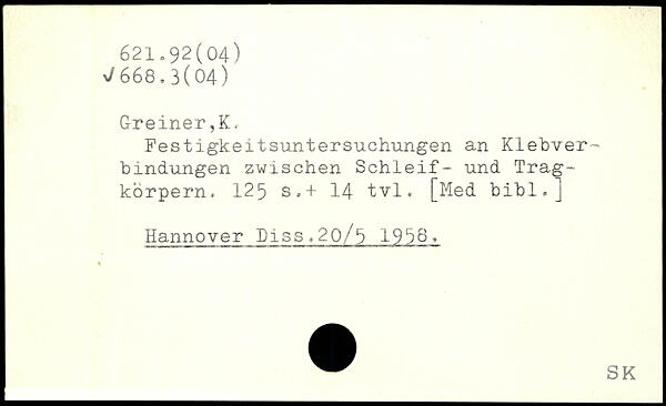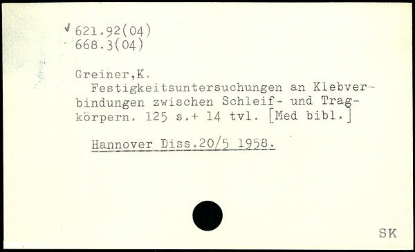 Festigkeitsuntersuchungen an Klebverbindungen zwischen Schleif- und Trag-kbrpern.