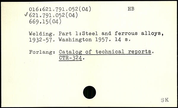 Welding, Part 1:Steel and ferrous alloys, 1932-57
