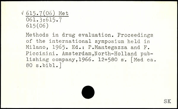 Methods in drug evaluation. Proceedings of the international symposium held in Milano, 1965- Ed.: P.Mantegazza and F. Piccinini.