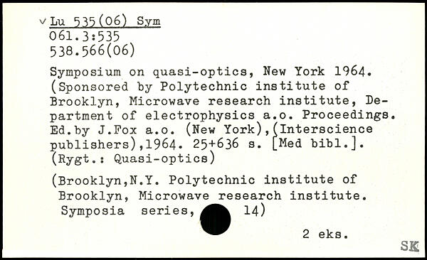 Symposium on quasi-optics