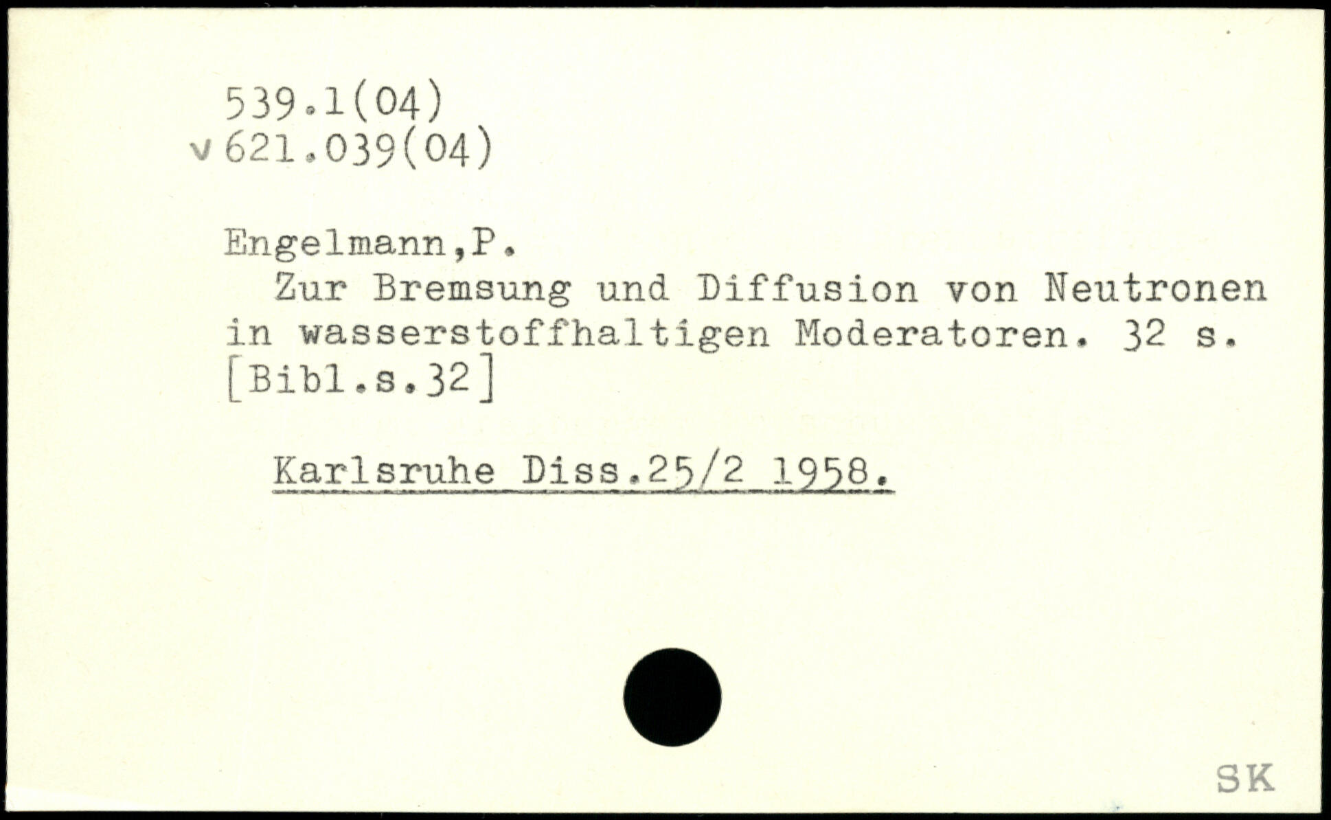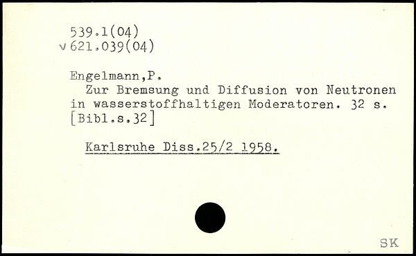 Enge1mann,P. Zur Bremsung und Diffusion von Neutronen in wasserstoffhaltigen Moderatoren.