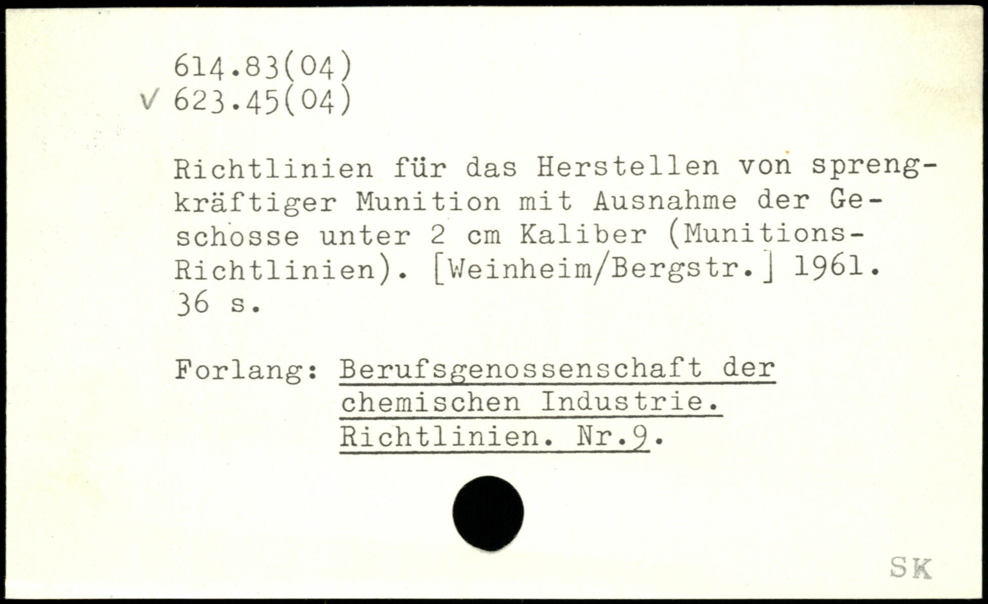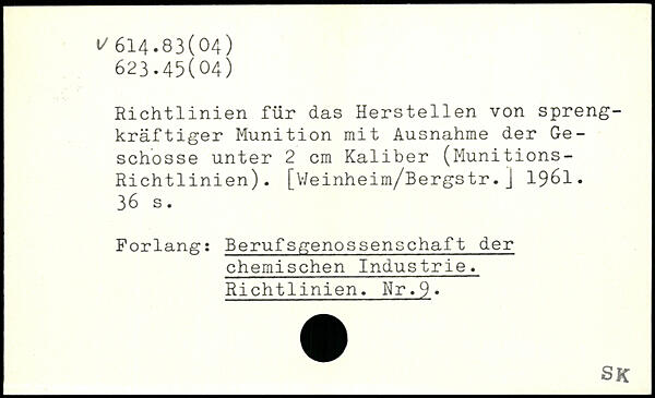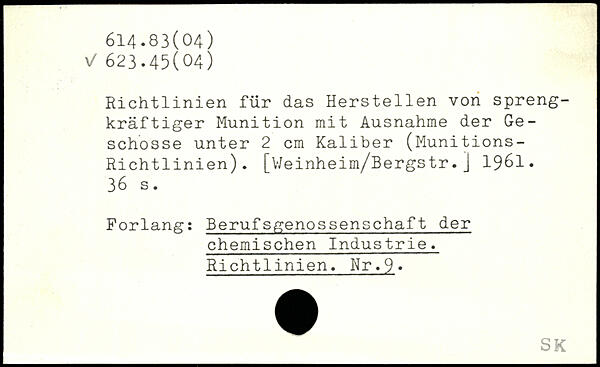 Richtlinien für das Herstellen von spreng-kräftiger Munition mit Ausnahme der Geschosse unter 2 cm Kaliber (Munitions-Richtlinien).