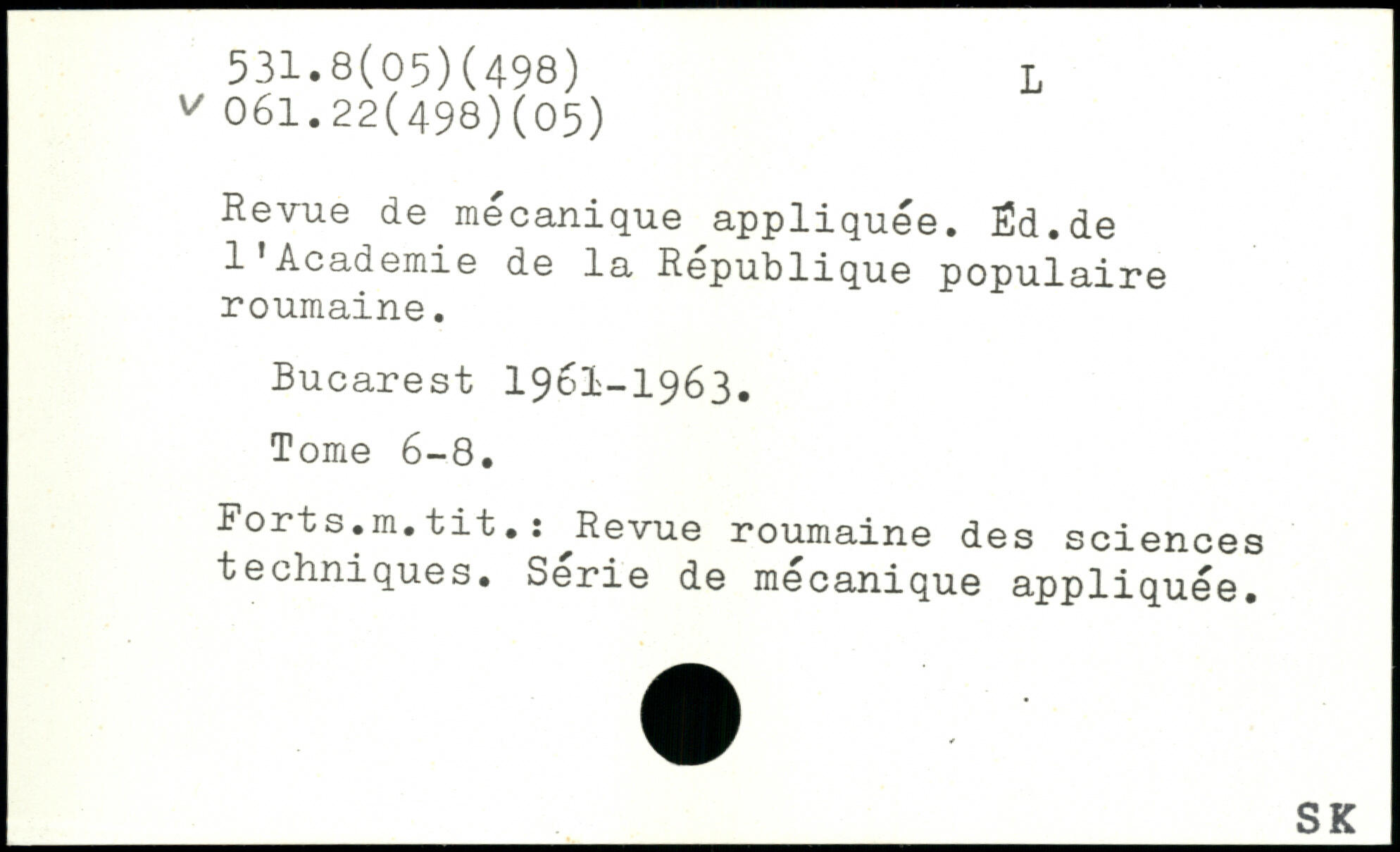 Revue de mécanique appliquée. Êd.de l’Academie de la Republique populaire roumaine.