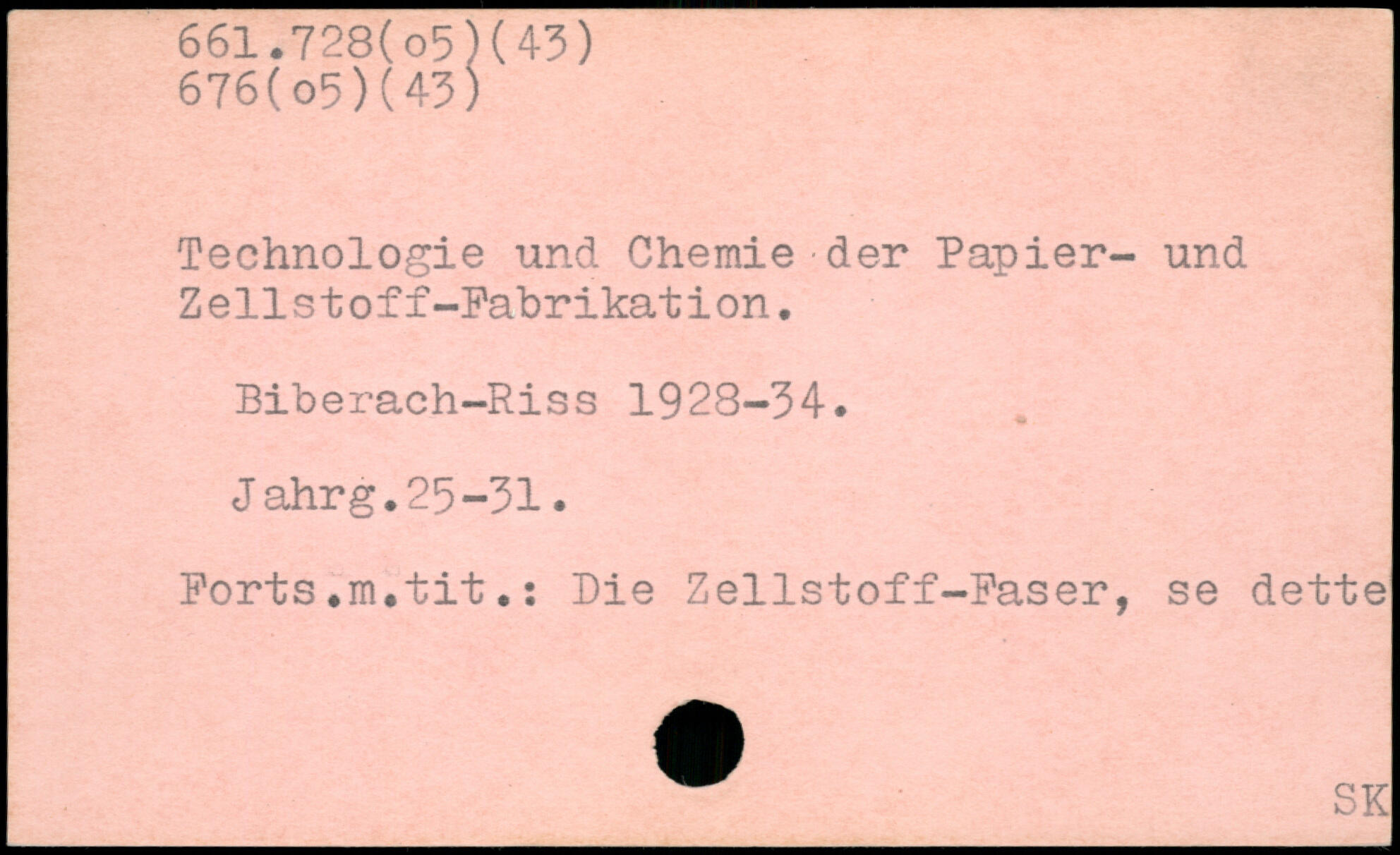 Technologie und Chemie der Papier- und Zellstoff-Fabrikation. Biberach-Riss 1928-34. Jahrg.25-31. Forts.m.tit.; Die Zellstoff-Faser, se dette