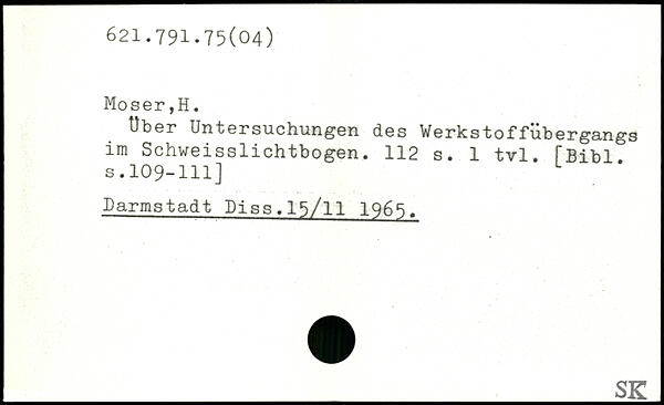 über Untersuchungen des Werkstoffübergangs im Schweisslichtbogen.