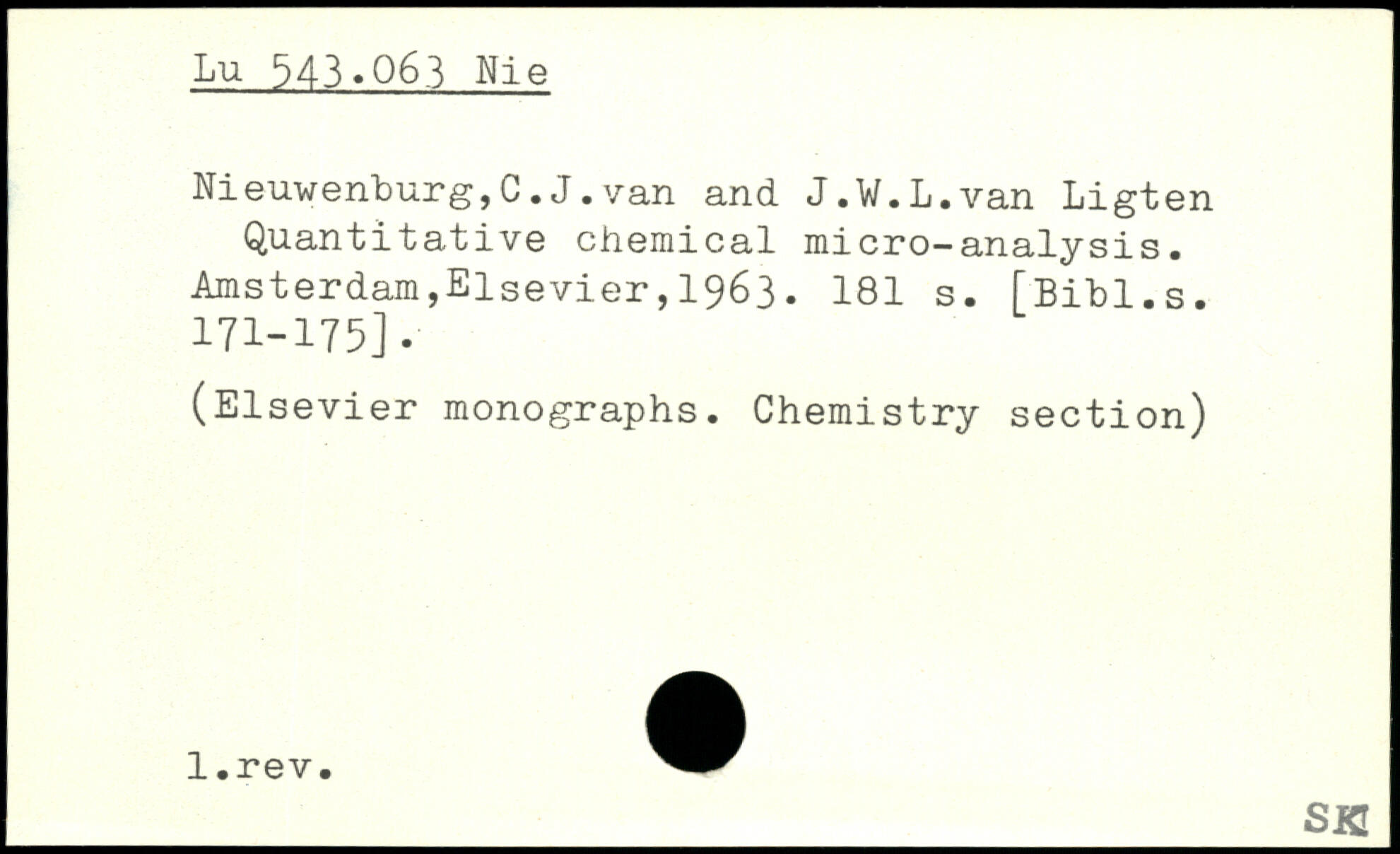Sted: Ligten Quantitative chemical micro-analysis, Amsterdam