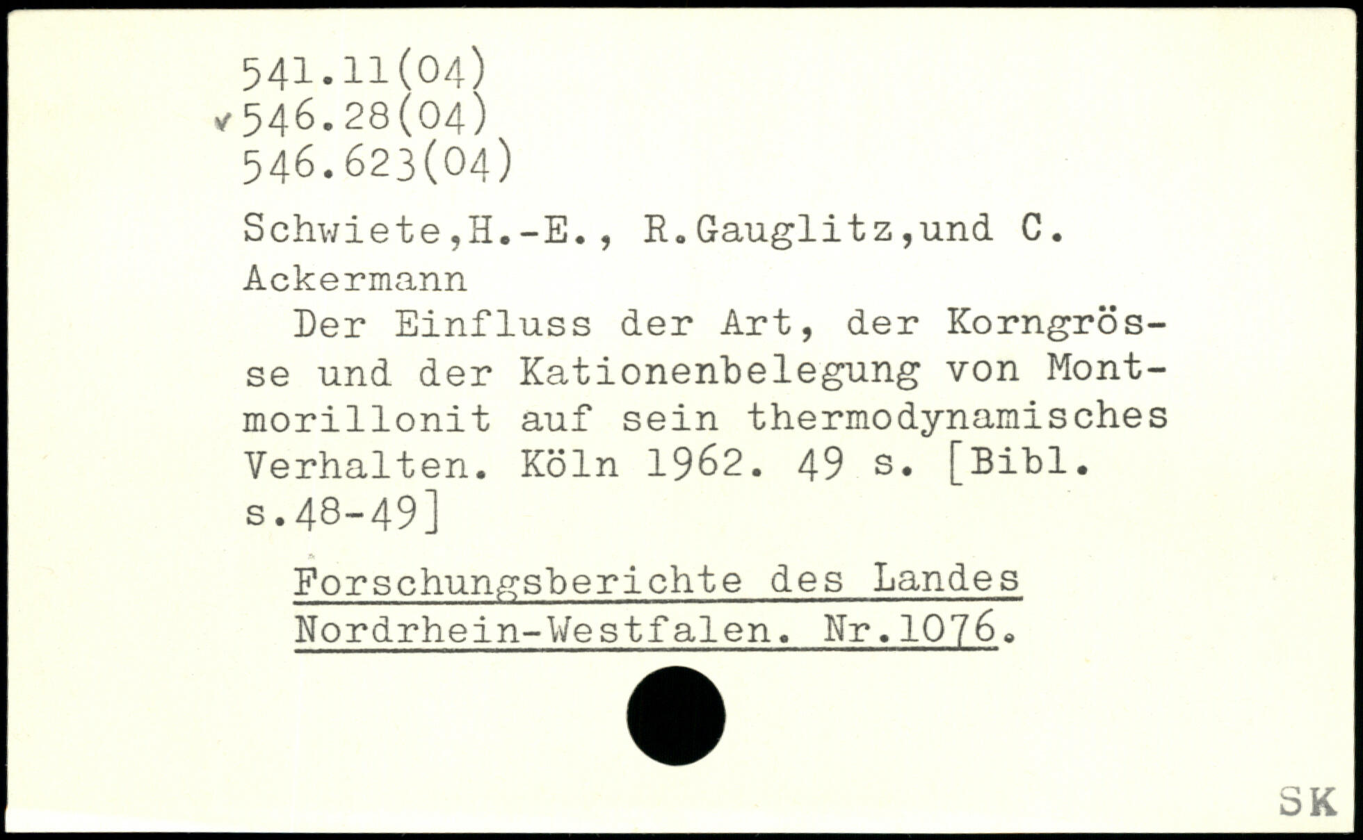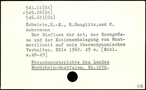 Schwiete,H.-E., R.Gauglitz,und C. Ackermann Der Einfluss der Art, der Korngrösse und der Kationenbelegung von Mont-morillonit auf sein thermodynamisches Verhalten.