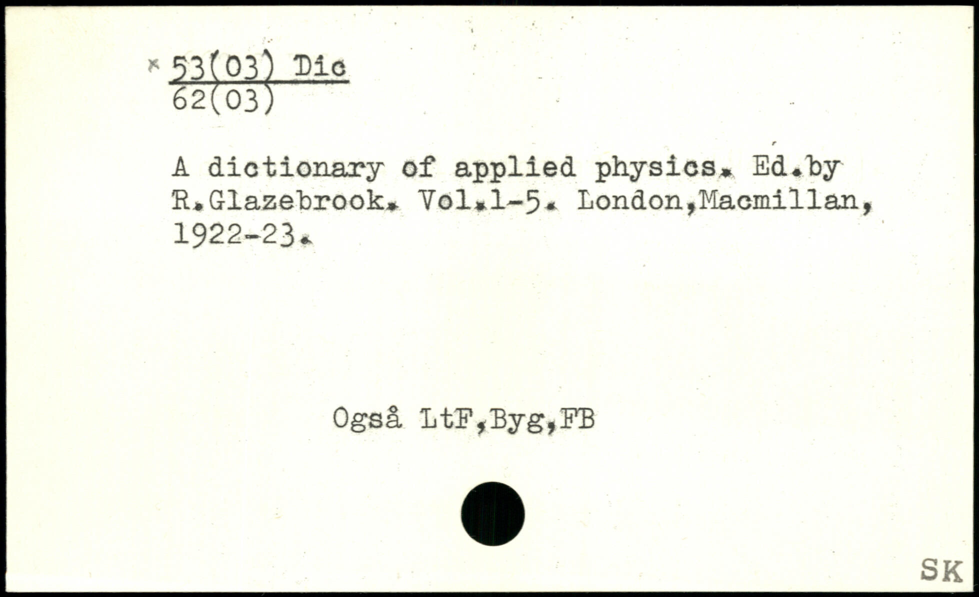 A dictionary of applied physics. Ed.hy R.Glazehrook. Yol.l-5.