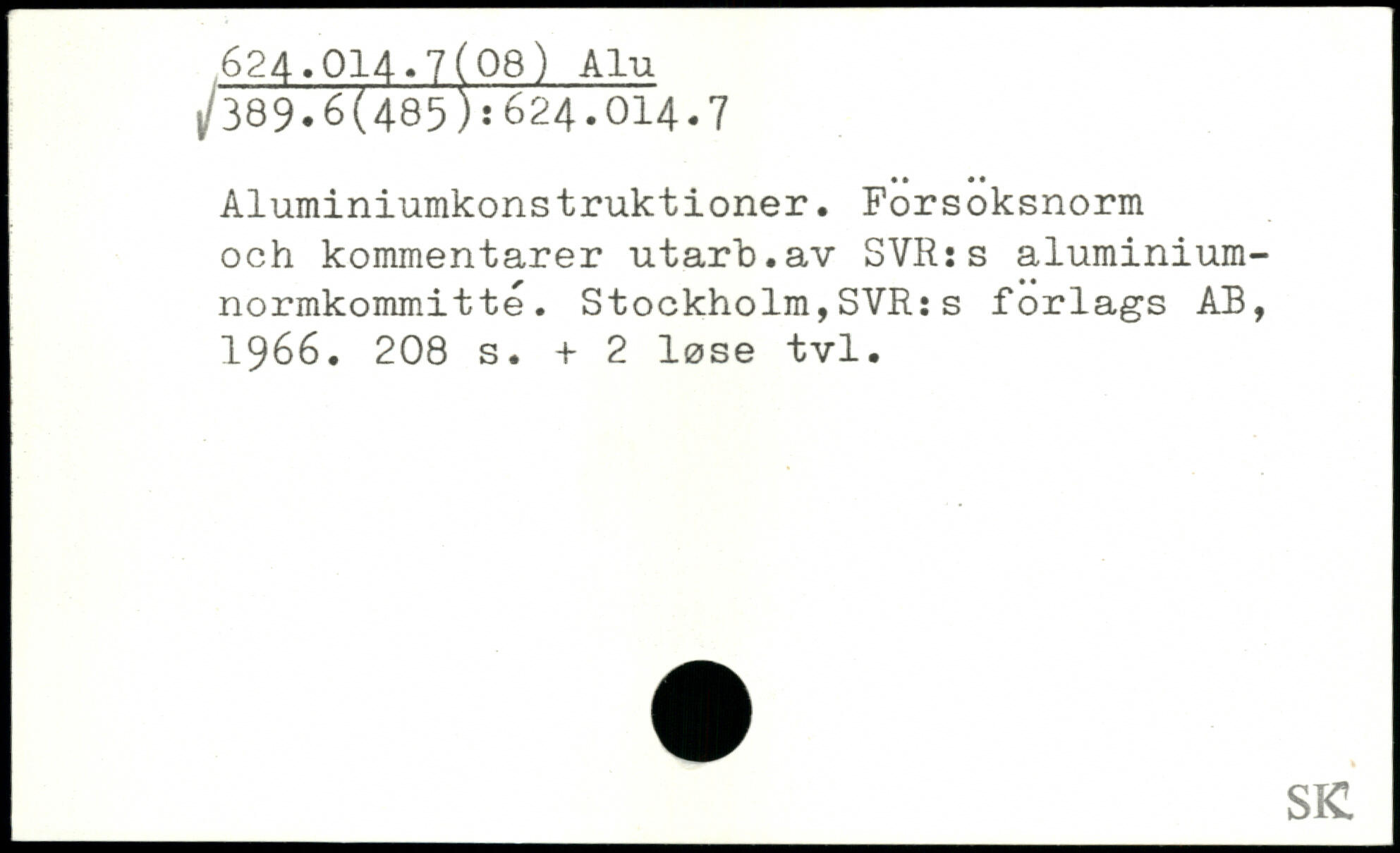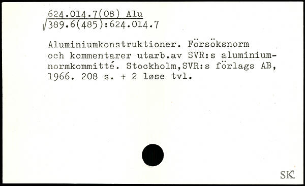 Aluminiumkonstruktioner. Forsoksnorm och kommentarer utarb.av SVRîs aluminium-normkommitté. Stockholm,SVR:s forlags AB, 1966.