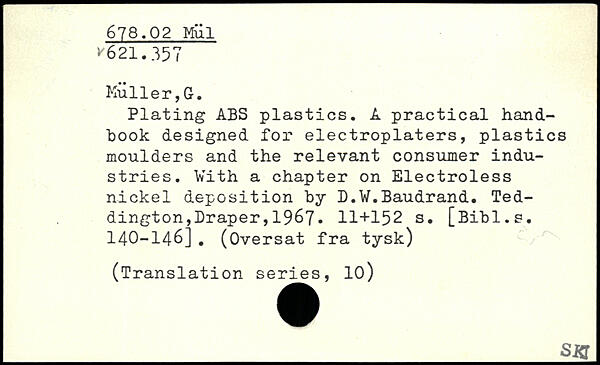 Plating ABS plastics. A practical handbook designed for electroplaters, plastics moulders and the relevant consumer industries. With a chapter on Electroless nickel deposition by D.W.Baudrand.