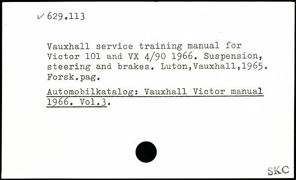 Vauxhall service training manual for Victor 101 and VX 4/90 1966. Suspension, steering and brakes.