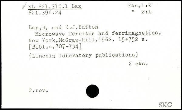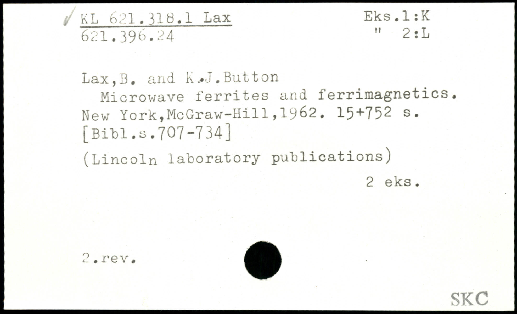 Lax,B. and k^-J.Button Microwave ferrites and ferrimagnetics.