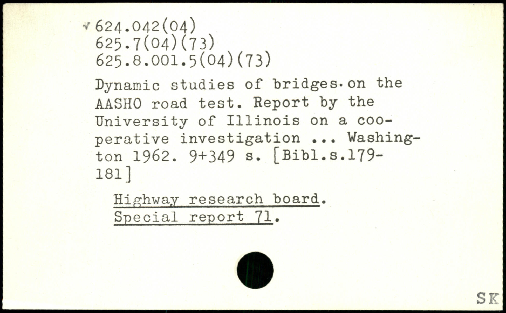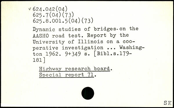 Dynamic studies of bridges-on the AASHO road test. Report by the University of 1111nois on a cooperative investigation ...