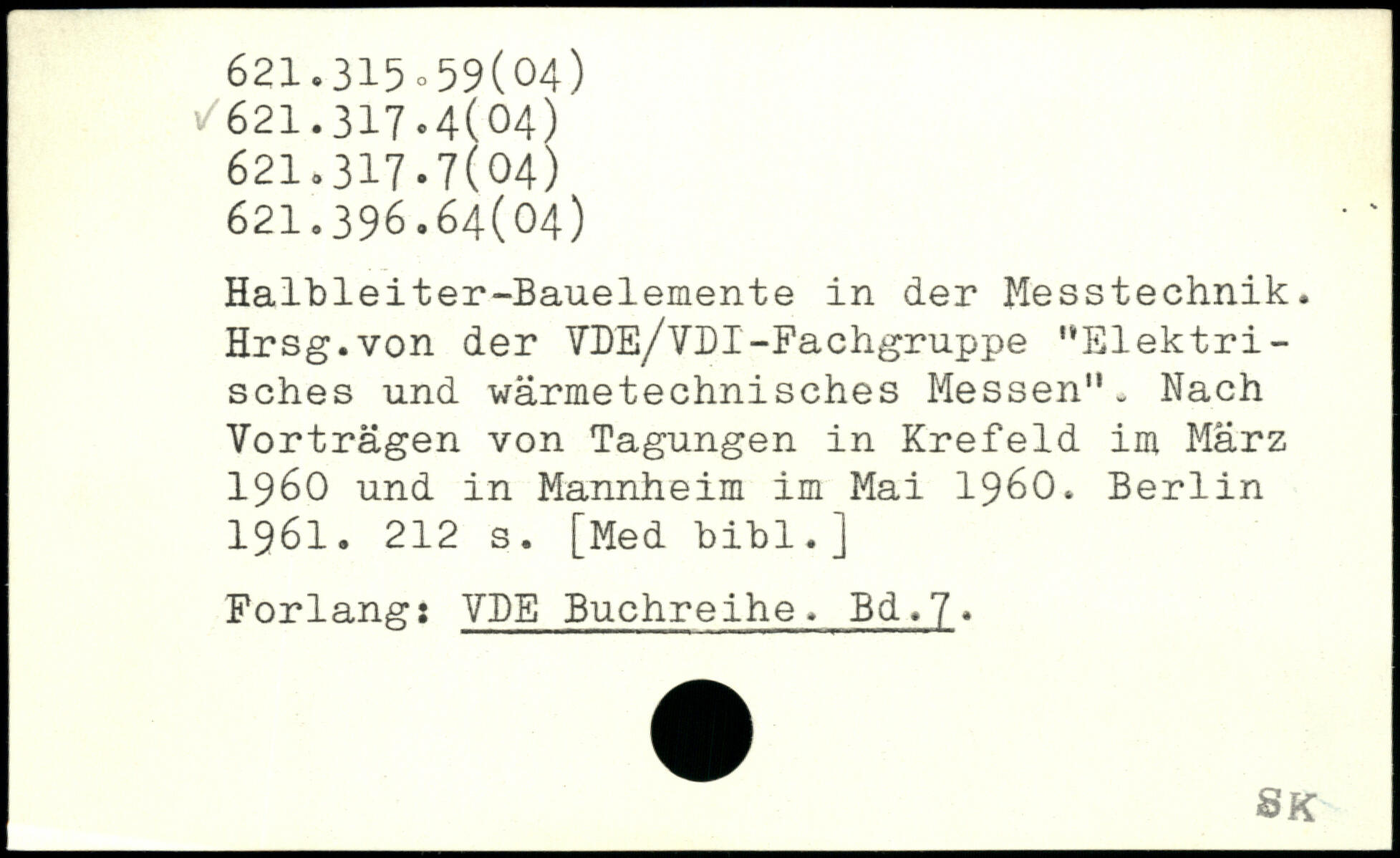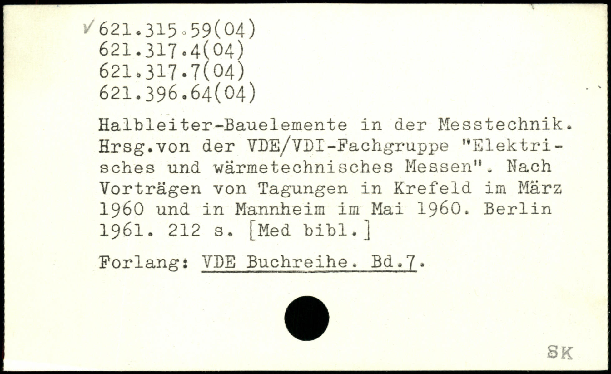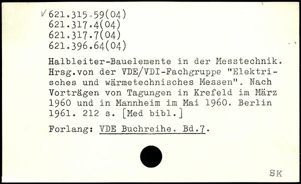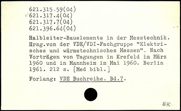 Halbleiter-Bauelemente in der Messtechnik. Hrsg.von der VDE/VDI-Fachgruppe ”Elektrisches und wärmetechnisches Messen". Nach Vorträgen von Tagungen in Krefeld im März 1960 und in Mannheim im Mai 1960.