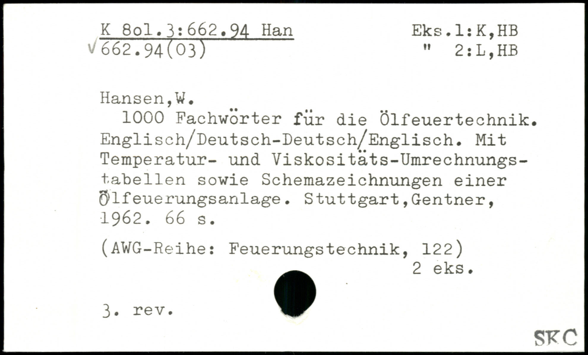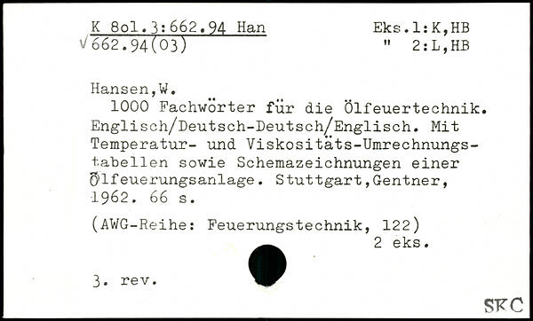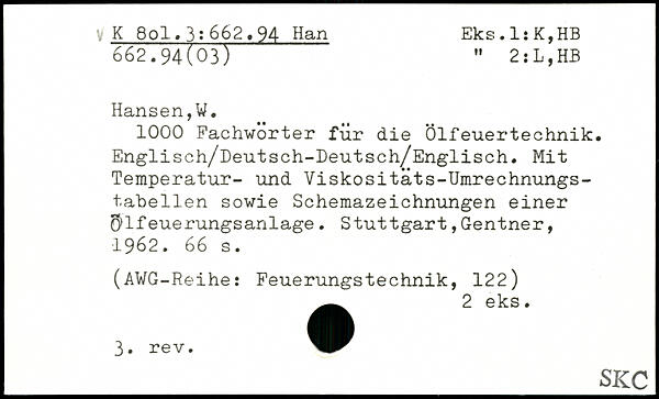 1000 Fachwörter für die Ölfeuertechnik. Englisch/Deutsch-Deutsch/Englisch. Mit Temperatur- und Viskositäts-Umrechnungstabellen sowie Schemazeichnungen einer S>lfeuerungsanlage.