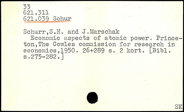 Economic aspects of atomic power. Princeton, The Cowles commission for research in economics,1950.