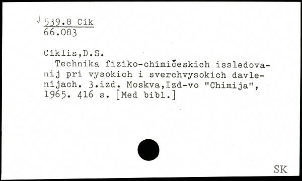 Technika fiziko-chimiceskich issledova-nij pri vysokich i sverchvysokich davle-nijach. 3-izd. Moskva,Izd-vo "Chimija", 1965.