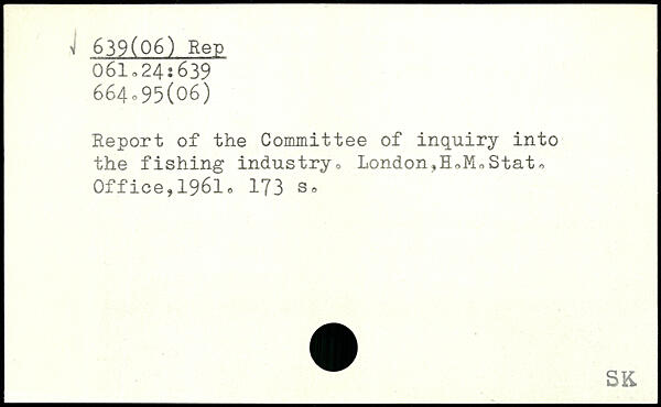 Report of the Committee of inquiry into the fishing industry, London,H,MoStato Office,19610